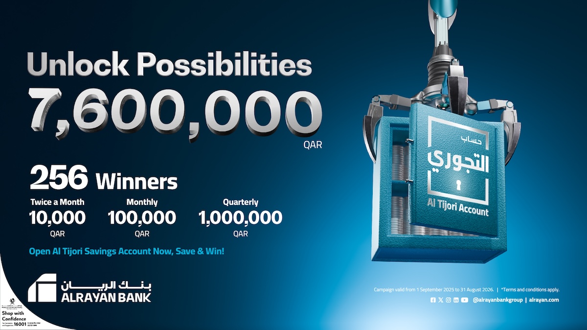 AlRayan Bank is inviting all its customers to experience Al Tijori, a Savings Account that combines saving, growth, and the excitement of frequent prize draws. Designed to fit different lifestyles and financial goals, it offers everyone the chance to build their savings while enjoying the possibility of winning valuable rewards throughout the year.